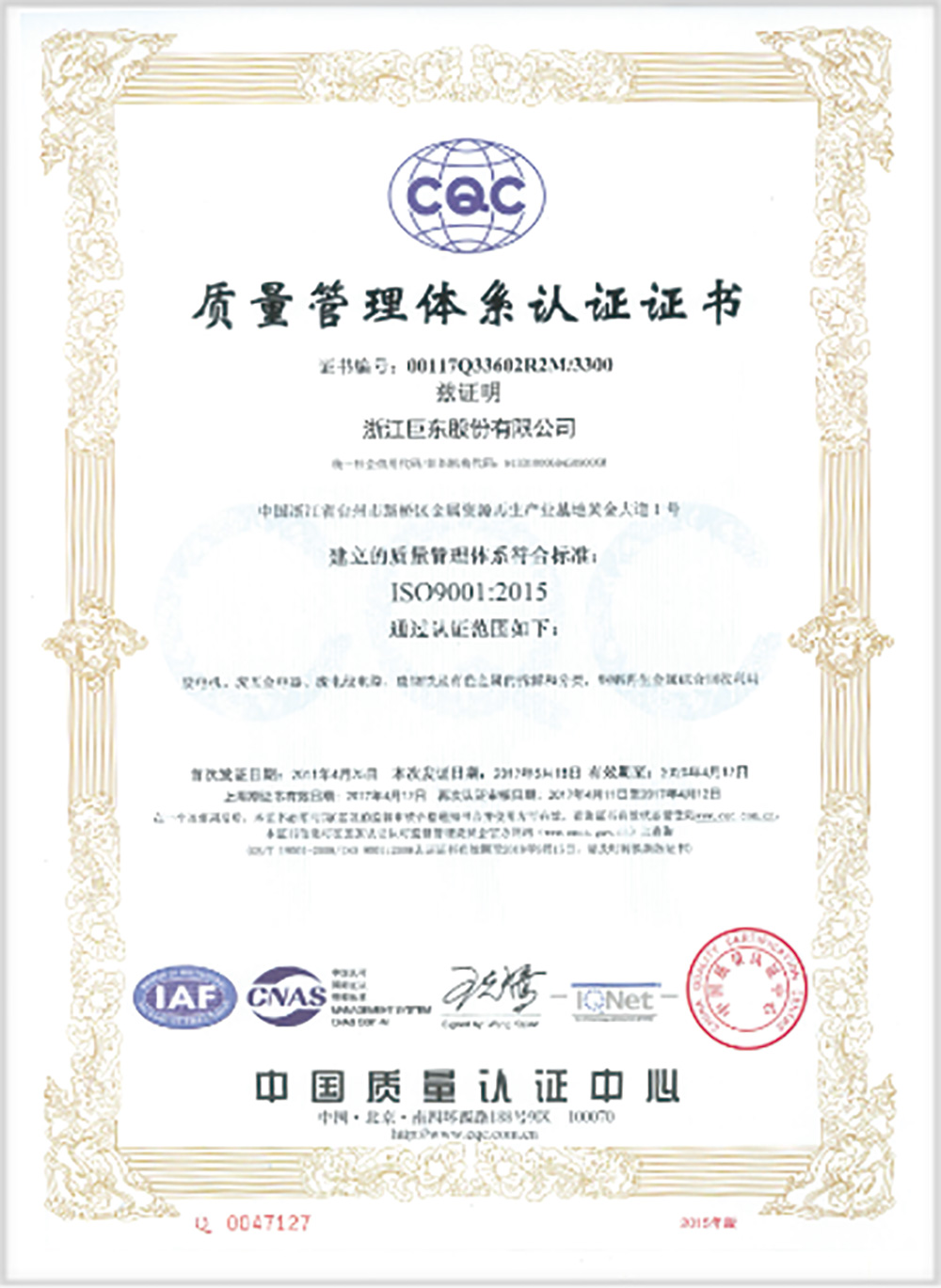 • 2017 AAA contract abiding and trustworthy enterprise in Zhejiang Province