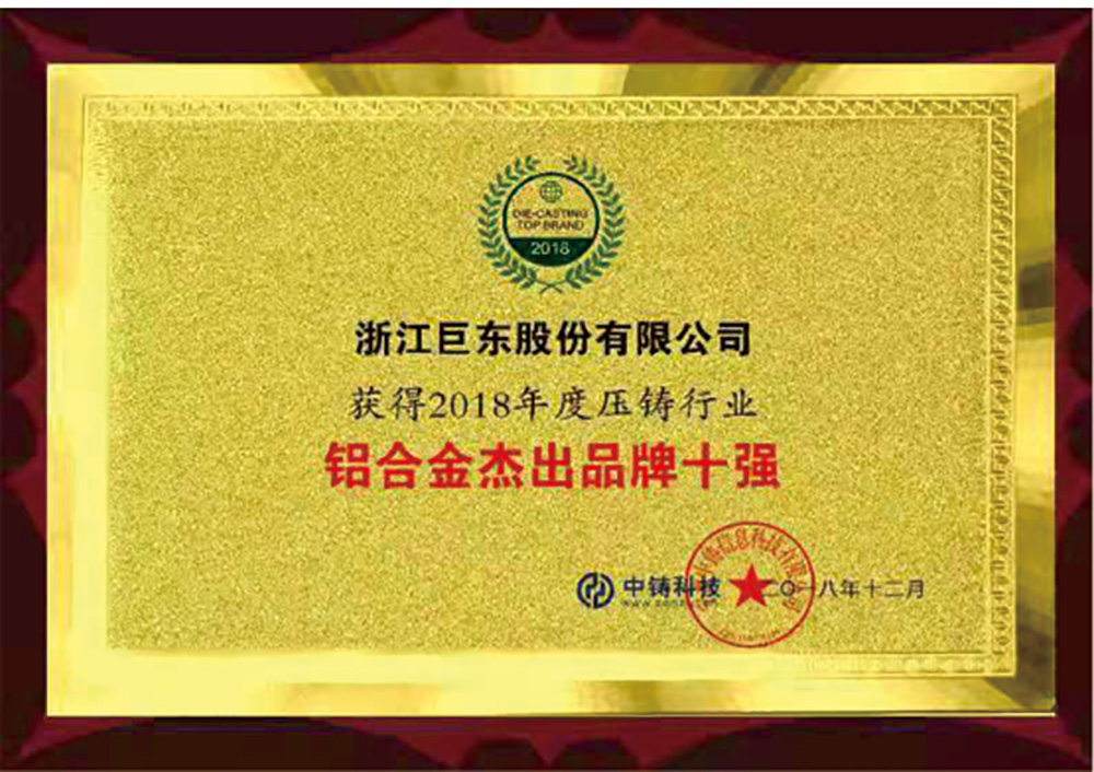 2018年度壓鑄行業(yè)鋁合金杰出品牌十強(qiáng)