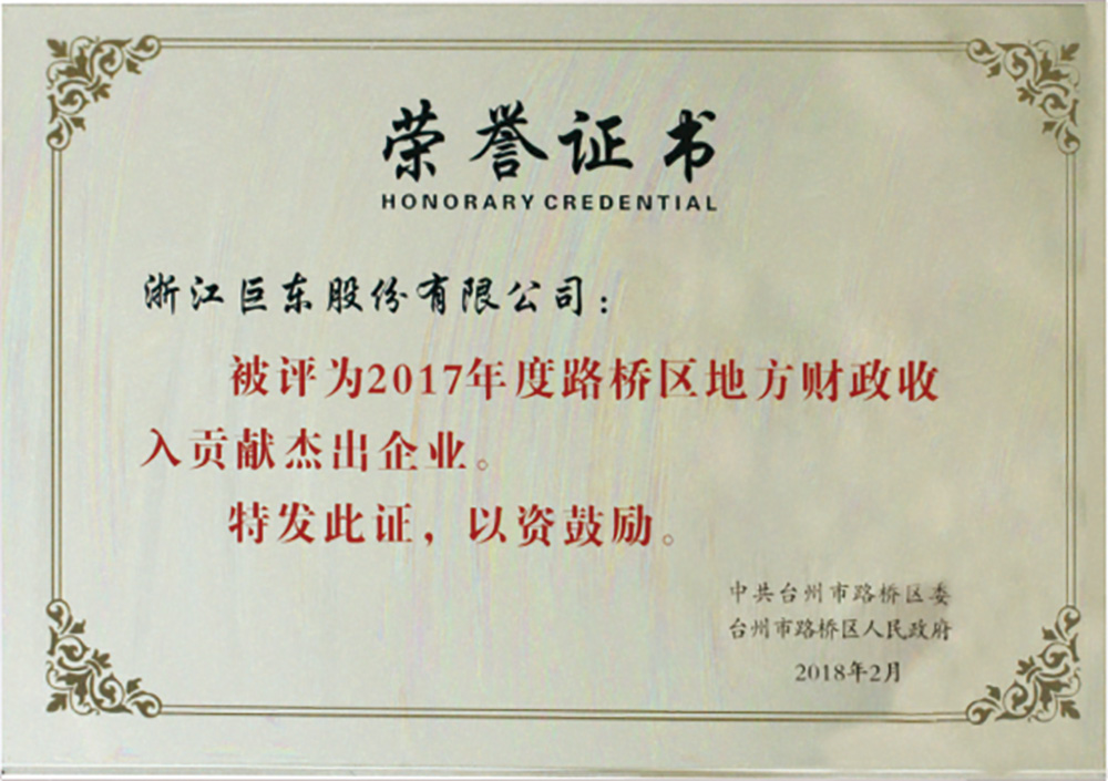 路橋區(qū)地方財(cái)政收入貢獻(xiàn)杰出企業(yè)